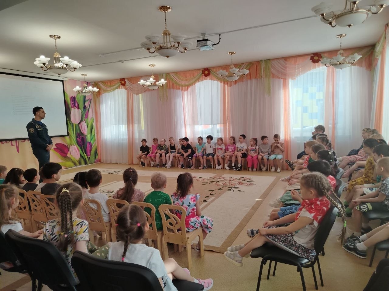 "Всемирный день гражданской обороны" прошёл сегодня в нашем детском саду. С целью обучения воспитанников правилам безопасного поведения и действиям при угрозе возникновения чрезвычайных ситуаций детский сад посетил помощник начальника караула 42 ПСЧ прапорщик внутренней службы Д.В. Гринвальд. Воспитанники с интересом смотрели и обсуждали с Дмитрием Викторовичем обучающие ролики о том, как вести себя дома, на улице, на природе и как нужно действовать в случае возникновения пожара.