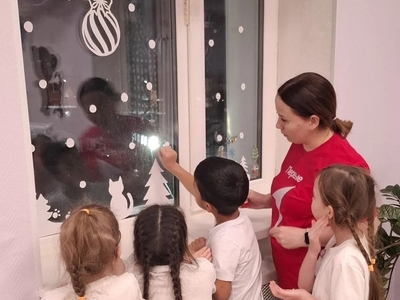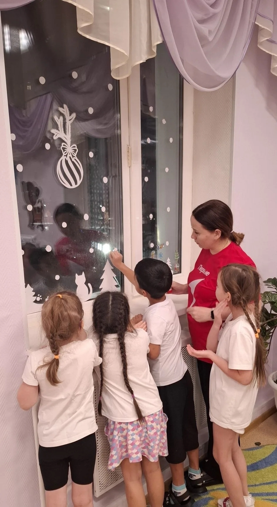 Юные участники "Движения первых", воспитанники детского сада, активно включились в акцию "Новогодние окна"!