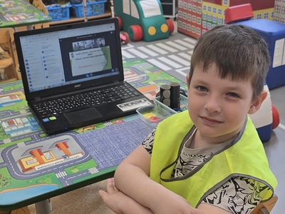 🟡🟢Капитан отряда ЮИД детского сада 25 "Семицветик " Юльмамбетов Динислам принял участие в заседании муниципального методического объединения "Юные инспекторы движения" в онлайн-режиме, где стал участником конференции «Безопасное колесо Kids» и выполнил творческое задание по изготовлению светофора . Он отвечал на задания и дорожные ребусы от Светофорика.