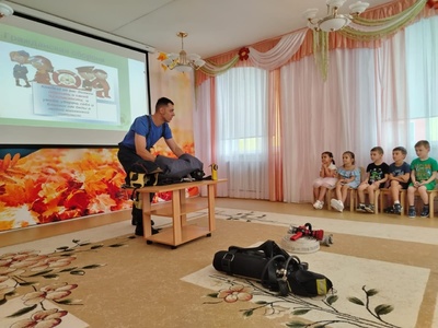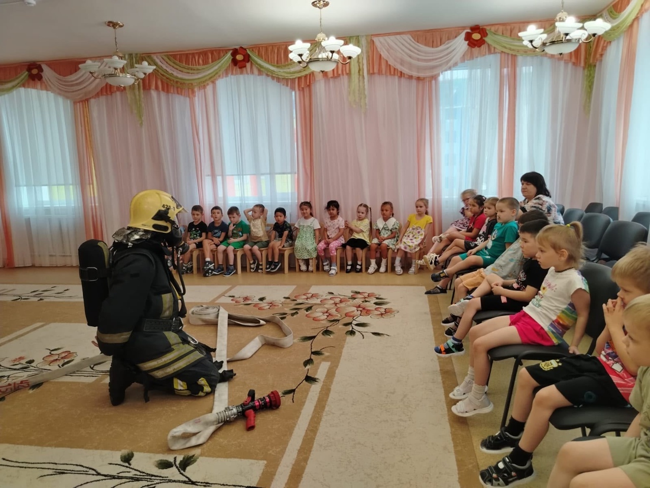 В рамках Месячника гражданской обороны и в целях формирования у воспитанников нашего детского сада осознанного и ответственного отношения к правилам пожарной безопасности, представитель 5 ПСО ФПС КО прапорщик внутренней службы Д.В. Гринвальд провел тематическую беседу с детьми, во время которой продемонстрировал снаряжение и оборудование, используемое при пожаротушении, и наглядно показал, как именно это оборудование применяется в процессе тушения пожара. Дети с интересом слушали Дмитрия Викторовича, задавали вопросы и отвечали на них о правилах пожарной безопасности в быту и на природе. Дошкольники почерпнули много полезной информации из беседы с гостем. Надеемся, что доверие к пожарным и телефоны «101» и «112» запомнятся навсегда.