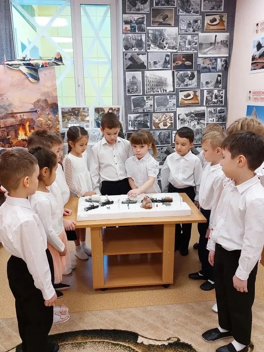 Ребята посетили музей, где посмотрели фотографии, макеты «Дорога жизни», узнали о блокадном хлебе и хлебных карточках. Познакомились с историей блокадной ласточки, стихотворением Ольги Берггольц «Маленькую ласточку из жести…».